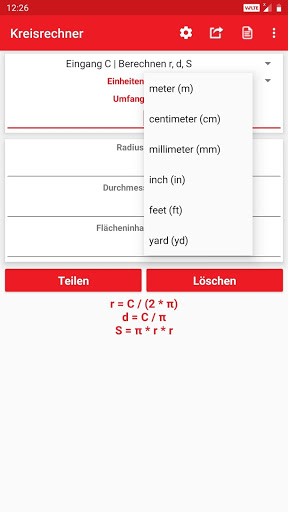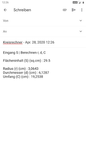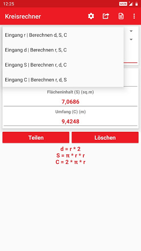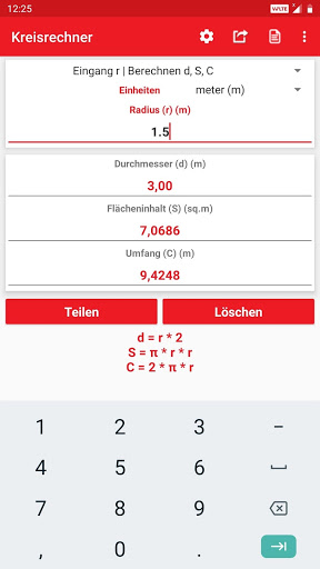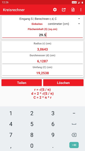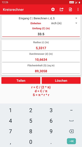 Berechnete Werte und Ergebnisse können für soziale Medien, E-Mails, Nachrichten und andere freigegebene Apps freigegeben werden.