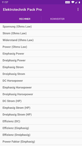 Elektrische Rechner enthält 45 Taschenrechner, die schnell und einfach berechnen können verschiedene elektrische Parameter. Automatische Berechnungen und Umrechnungen mit jeder Einheit und Wert ändert.