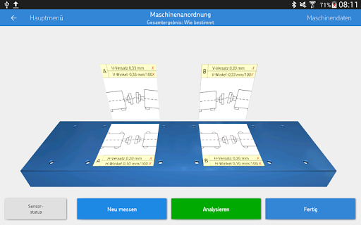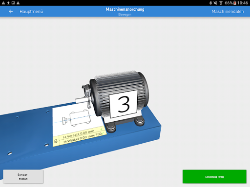 • Demo-Modus: Die Ausrichtungs-App für Maschinenanordnungen präsentiert eine vollständige Testausrichtung. Der Anwender hat so die Möglichkeit, sich vor dem Kauf des TKSA 71 vom Nutzen des Geräts zu überzeugen.