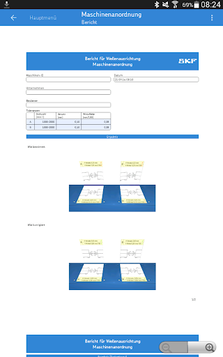 • Automatische Berichte für die Dokumentation der Wellenausrichtung: Sie vermitteln einen vollständigen Überblick über die Prozesse der Wellenausrichtung und deren Ergebnisse. Die Berichte können mit zusätzlichen Anmerkungen, Maschinenbildern, Unterschriften usw. kundenspezifisch ausgeführt und über E-Mail oder Cloud geteilt werden.