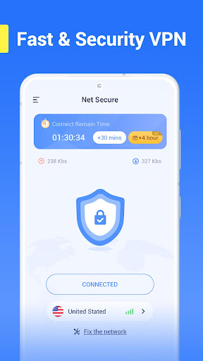 Ein Tippen Sie auf eine Verbindung zu einem kostenlosen VPN -Proxy -Server.Net Secure arbeitet mit WiFi, LTE, 3G und allen mobilen Datenanbietern.*Freiheit, alle Websites zu durchsuchen