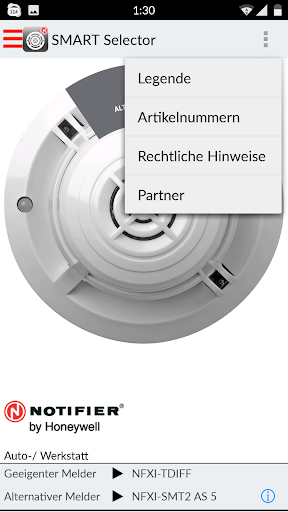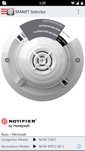 Zusätzlich bekommen Sie mit Hilfe der SMART Selector App einen Überblick über das verfügbare Melderportfolio von NOTIFIER by Honeywell.
