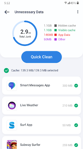 Neben den vorherigen Funktionen fügte Free Cleaner ein App-Management-System hinzu, das ALLO WS können Sie Apps En MASSE deinstallieren. Normalerweise müssten Sie jedes Spiel oder Apps manuell entfernen, aber mit einem Booster können Sie alles auswählen, was Sie nicht mehr verwenden, und deinstallieren Sie es nicht mehr mit einem einzigen TAP! Telefon Booster ist ein intelligenter Batterieschoner, mit der Manager-App, die CPU-Kühler, Batteriesparer, Cache-Clearing, Speicherreiniger verwenden kann.