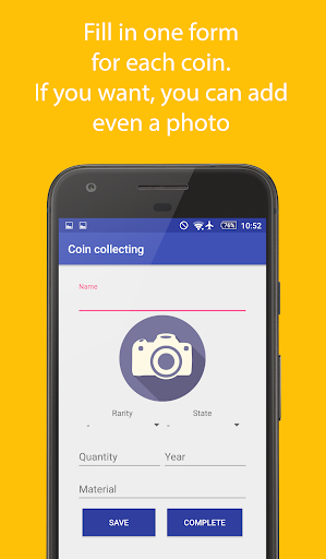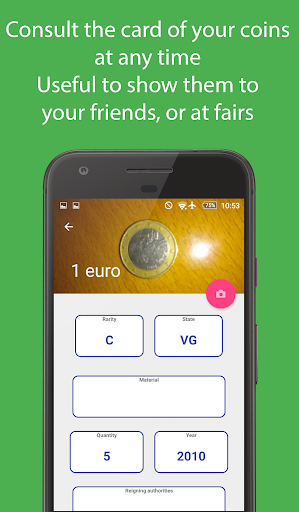 It will categorize all your coins and associate, if you want, even a photo. You can consult them at any time, show them to friends or use the app during the numismatic fairs.