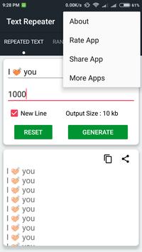 Using this application you can send the same message at multiple times. This app is low size APK. It is one kind of message repeater to send message repeatedly, and also you can set your repetition limit with new line text repetition. Very easy to use and required few click for your message repetitions.