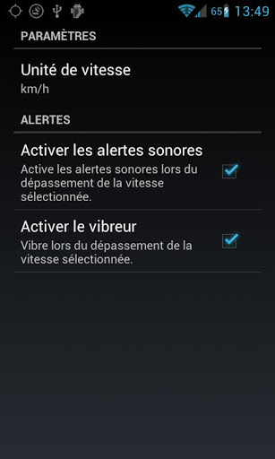 It is also possible to activate the vibrate mode to be warned of speeding even with the phone in his pocket.