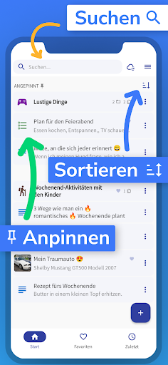 Mit einer separaten Liste für die zuletzt bearbeiteten Notizen kannst du schnell dort weiter machen wo du aufgehört hast.