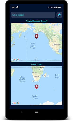 You can check the diametrical opposite of your current location, or move the marker anywhere on the map, or search any place in the world to find the antipodes.