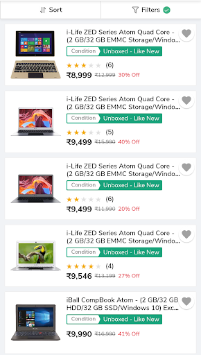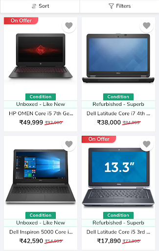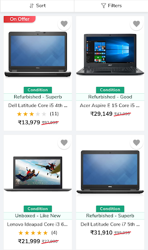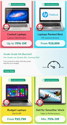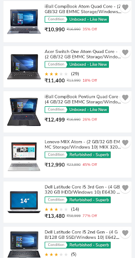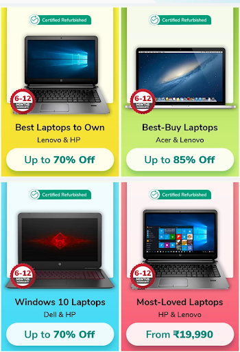 Kaufen Sie nun zertifizierte renovierte Laptops von einer breiten Sammlung von Marken aus. Sie können auch zertifizierte renovierte Computer, Fernseher, Mobiltelefone und viele mehr kaufen. Erhalten Sie bis zu 70% Rabatt auf Ihre bevorzugten elektronischen Zubehör. Erhalten Sie tägliche Angebote und bietet nur in dieser App. Laden Sie jetzt die App herunter.