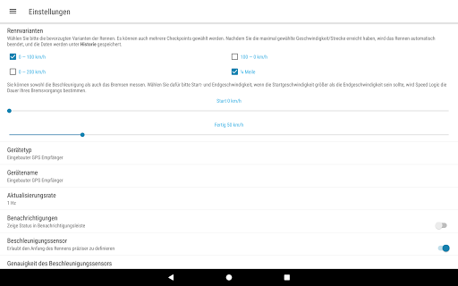 Messen Sie, wie schnell Ihr Fahrzeug läuft an und hält an. Speichern Sie Ihre Rennen Ergebnisse und geben Sie diese an Ihre Freunde weiter. Außerdem ist Speed Logic ein einfaches und handliches Tachometer mit nützlichen Funktionen.