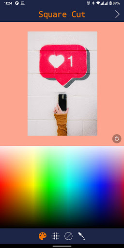 👉🏻 Farbpalette ist eine Funktion im Square Cut für Instagram, um Farben aus der Farbe zu wählen Bar und auf Ihren Hintergrund Ihres Bildes gesetzt Es gibt so viele Farben und seine Lichter und dunkler Varianten, also wählen Sie Ihre beste geeignete Farbe für Ihr Bild aus