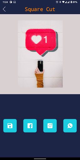 Square Cut-Anwendung konvertiert Ihr Porträt oder eine Landschaft in das Quadrat, ohne das Originalbild zu schaffen, und Sie können es in Ihrem Gerät speichern und auch in der Lage sein, Ihre Social-Media direkt aus dem Antrag teilzunehmen.