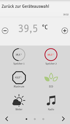 Alle Funktionalitäten, die am Bedienelement eingestellt werden können, sind ebenso über die App einstellbar. Temperatur- und Funktionseinstellungen können so noch bequemer vorgenommen werden. Möglich ist es z.B. auch Temperaturspeicher festzulegen sowie Energiesparfunktionen auszuwählen und einzustellen.