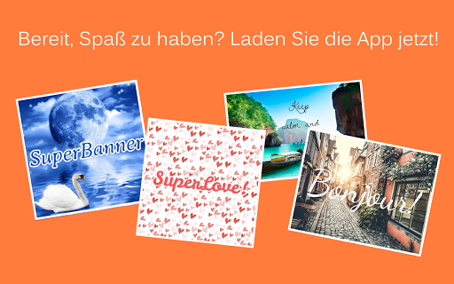 Mit SuperBanner erstellen sie wunderschöne nachrichten. Wählen sie aus einzigartigen hintergründen und fügen sie ihre botschaft hinzu und wählen sie farbe & schrift. Sie werden es lieben!