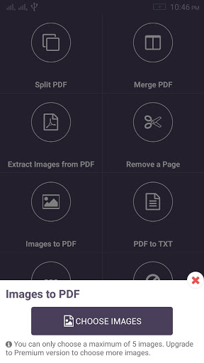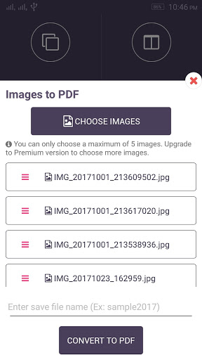 Select as many as 5 images to be converted into a new PDF file with your desired file name with PDF Doctor.
