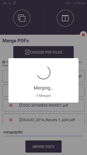 Merge as many as 5 files together and save them into a new PDF file with your desired name.