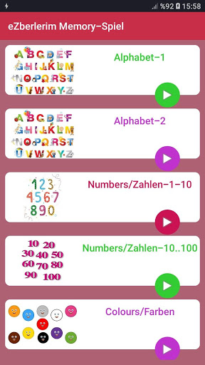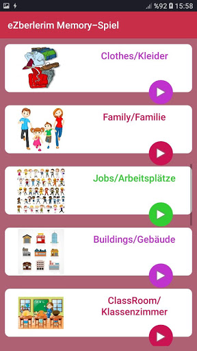 ● Beginnen Sie mit dem gewünschten Abschnitt, um mit Memory Game Deutsch zu lernen -