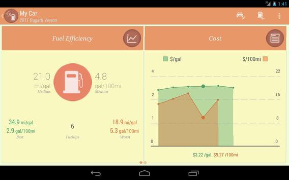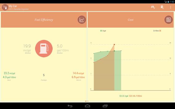 This app allows you to keep track of the fuel consumption and efficiency for your auto vehicle. It will calculate the vehicle's fuel efficiency and keep track of total fuel costs.