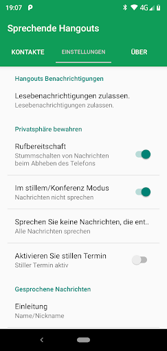 Laden Sie diese kostenlose App herunter, um Chat-Messenger-Nachrichten von Google Hangouts anzuhören. Perfekt als Hangout-Chat-Reader für den Freisprech-Fahrmodus. Sie müssen Ihr Telefon nicht erreichen oder anzeigen. Hören Sie einfach auf die Stimme Ihrer Hangout-Nachrichten.