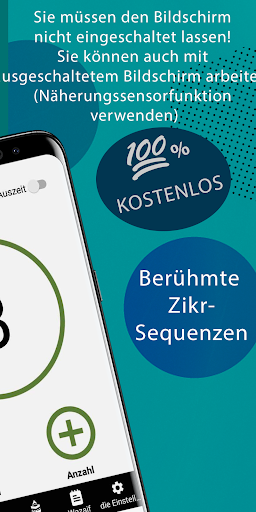 • Sie müssen den Bildschirm nicht eingeschaltet lassen: Sie können Zikr auch bei ausgeschaltetem Bildschirm zählen! Verwenden Sie die Funktion „Zählung der Handbewegungen“ (Näherungssensor).