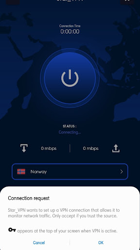 Klicken Sie auf dem Hauptbildschirm auf Verbinden, um M. Star VPN zu verwenden. Wenn Android-System ein Dialogfeld anzeigt, um eine Verbindungserlaubnis anzufordern, klicken Sie auf OK oder akzeptieren Sie, um fortzufahren.
