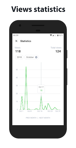 Jeder Artikel zeigt die Gesamtzahl der Ansichten an. Es ist auch möglich, die Statistik der Ansichten für den angegebenen Monat oder das ganze Jahr über anzuzeigen.