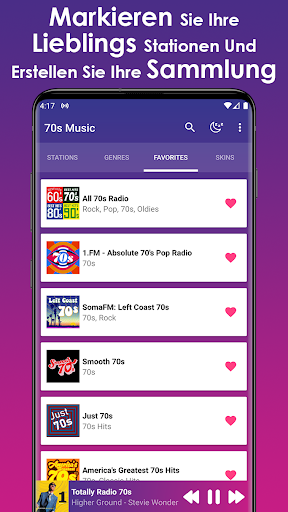 Die kostenlosen Radiosender, die Sie in dieser Anwendung finden, sind auf die Disco-Musik der 70er und 80er Jahre spezialisiert. Mit den Stimmen der besten Sänger der siebziger Jahre können Sie die beste Musik des Rock-Genres hören. In ihnen können Sie rund um die Uhr kostenlos Musik aus den 70er Jahren hören. Hören Sie sich in dieser Anwendung auch die besten Klassiker aller Zeiten an.