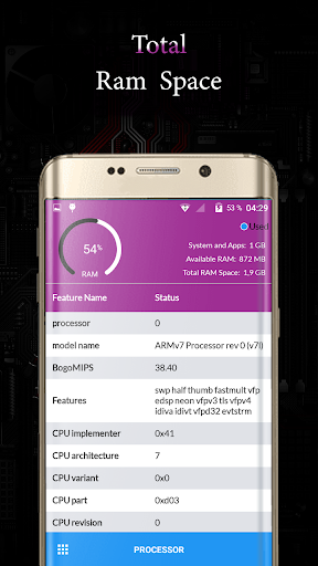 Die App versucht, Komponenten Ihres Smartphones zu erkennen Vollständige Informationen zur Hardware des Geräts.
