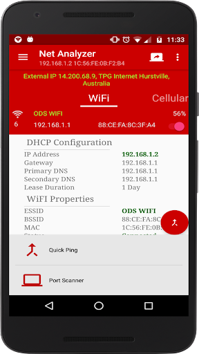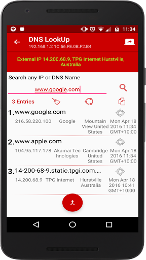 Der Net Analyzer findet alle IP-Adressen für den angegebenen Domänennamen und Karten mit jeweils jeweils den jeweiligen Serverstandort.Es kann das Netzwerk an Discovery Active-Geräte, die an diesem Instant angeschlossen sind, scannen.Es speichert auch die Daten für zukünftige Verweise auf Arbeit, wenn Sie offline arbeiten.Jede IP kann pinged und das Ergebnis wird in menschlicher lesbarer Form zurückgegeben.Die Anwendung zeigt auch das aktuelle interne (private Netzwerk) -V-IP sowie die externe (externe) IP-IP, wenn Sie mit dem Internet verbunden sind.Außerdem war es nie einfach, die Daten zu teilen, ob es sich in Text oder Bild handelt.
