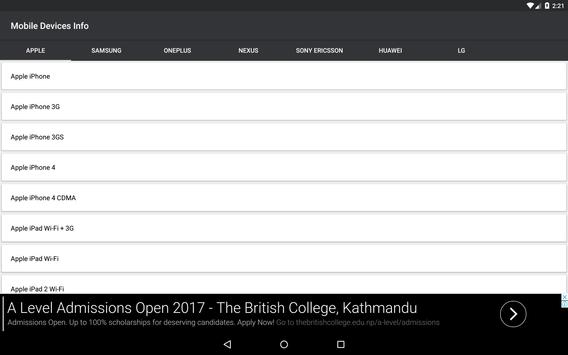 Mobile Devices Info is a free application to show the detail information about the most popular devices available in the market. It shows information like, the dimensions, weight, Gprs, wlan, Bluetooth etc. It also shows information like, when a particular device was announced, is the manufacturer still making the device or not.