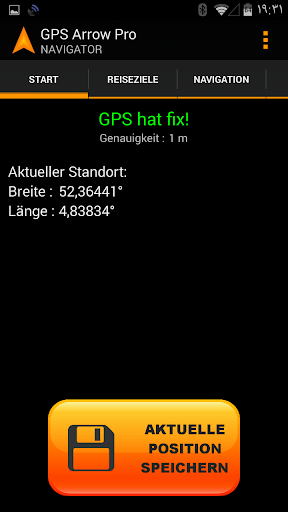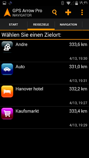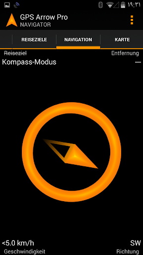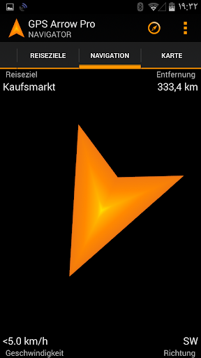 GPS Arrow Navigator zeigt Ihnen einen Pfeil in die Richtung des Zielortes, sowie Ihre aktuelle Richtung, Geschwindigkeit und Entfernung zum ausgewählten Ziel.