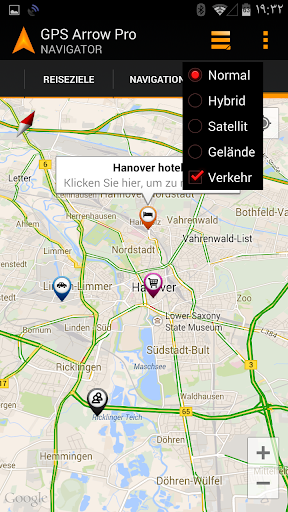 Speichern Sie Ihre aktuelle Position und verwenden Sie diese als Ziel, später auf dem Weg zurück. Zum Auffinden des Autos, Hotels, von Freunden, etc.