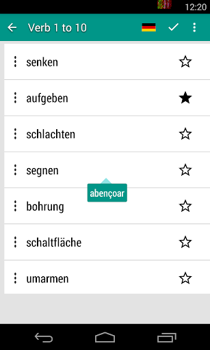 * Häufig verwendete Verben in Favoriten aufbewahren