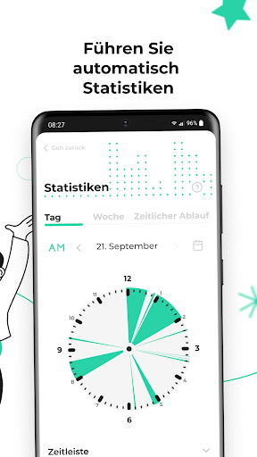 - Visualisierte Statistikanzeige mit interaktiven Diagrammen und Digitaluhrmodus