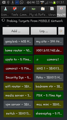 Haben Sie sich jemals gefragt, ob ein Gerät in Ihrem Zuhause- oder Arbeitsnetz schallig gescheitert ist? Wünschsamkeit wünschst es, dass es einen einfachen und effizienten Weg gibt, Internet-Dinge, Geräte und Anwendungen bei der Arbeit und zu Hause und zu Hause zu überwachen und eine Warnung zu erhalten, wenn etwas Schlimmes passiert? Hat es jemals passiert, dass Sie ein fehlgeschlagenes Gerät oder ein fehlgeschlagenes Gerät oder ein fehlgeschlagenes Gerät auf Ihrem Arbeits- oder Heimnetzwerk entdeckt haben, wenn er schlecht benötigt wurde? Server- und Sicherheitskameras sowie Router- und NAS- und Streaming-Geräte sowie Anwendungen sowie Websites sowie Websites scheitern die ganze Zeit. Sie müssen aufmerksam gemacht werden, wenn dies geschieht. Kurz gesagt, wenn Sie das Bedürfnis nach einer einfachen IP / TCP / HTTP-Überwachungsanwendung und des Dashboards auf einem mobilen Gerät / Tablet (Ihr primäres Gerät oder ein Ersatz) gefühlt haben oder einfach nur die Entwicklung von IPv6 und mehr unterstützen möchten, ist die Pro-App Für Sie , dig / nslookup für viele Datensatztypen, IPv6 / V4-Adressaufzählung und -prüfung, IPv6-Adressreferenz, IPv6-Adressgenerierung, neueste Tech / IPv6-Nachrichten und vieles mehr) und Sie erhalten auch: