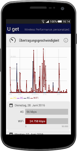 'U get' misst die Funksignalstärke, Datenübertragungsgeschwindigkeit und andere Metriken auf Deinem Smartphone und hilft dir die Werbeaussagen der Netzbetreiber genau zu bewerten.