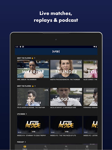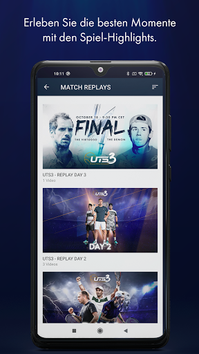 - Greifen Sie auf alle UTS-Match-Replays zu, damit Sie nichts verpassen und die Highlights Ihrer Lieblings-Tennisliga noch einmal erleben können.