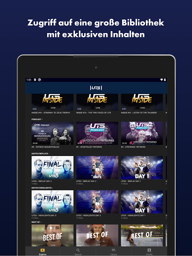 Mit Watch UTS können Sie die Spiele Ihrer Lieblingsspieler live oder als Replay verfolgen. Weitere exklusive Inhalte sind in Form von Podcasts und HD-Videos verfügbar.