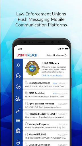 Union Reach is a specially designed mobile messaging platform, created to provide unions with a state-of-the-art push notifications system. Special Membership Benefits have also been added including a free conference call line for every union member who downloads the Union Reach mobile app. This conference line (bridge) supports up to 200 calls simultaneously. It offers you unlimited use and it's completely free!! Use for business, social, or even personal use. Get started using Union Reach today!