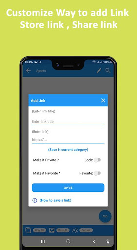 Simply save bookmarks of any link or text to the web pages and it will either store it immediately or ask you to organize and tag the text or link, depending on how you defined it. Some time you use some web page but latter you forgot them after some time if you want to again use them, So this problem is solve in this app. Simply save the link and without wasting time by one click you can reach the desire sites. You can also copy links anywhere on your phone and it will automatically ask you to save the link or text and organize it in the category you want