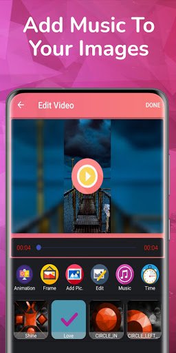 Movie Maker Pro with Music application helps you to create fast and awesome slideshow videos with selected photos and music. It is so easy to use that anyone can create beautiful video from photos in few minute.