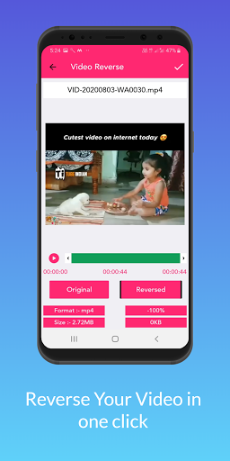 Video Cutter Tool schnürt sich Videos mit einfachen Schritten und speichert die Datei an Ihrem Telefon. Schneiden Sie Videos in ausgewählten Zeitintervallen an, wie Sie möchten, ohne Audio- und Video-Qualität zu verlieren