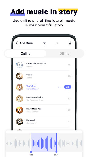 - Support Music Track Cropping, Fade In / Out-Funktionen.