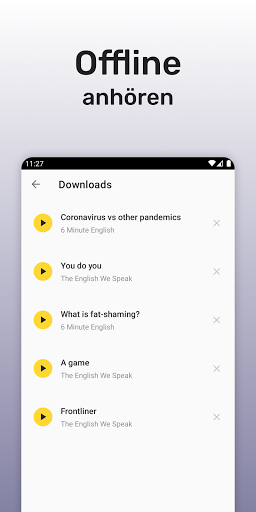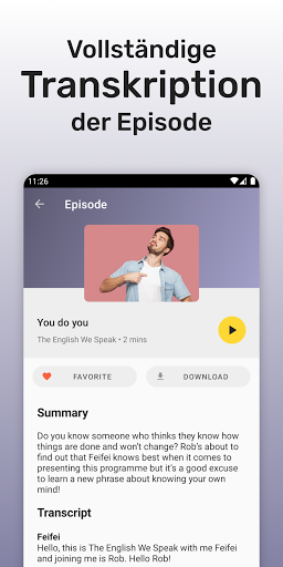 Sie können auch Episoden herunterladen und englische Podcasts offline anhören.