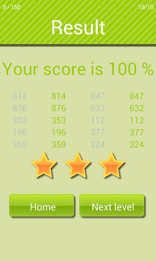 "Speed Reading-Spiel" zeigt für die kurzen Zeitnummern oder die Kombination von Zahlen und Buchstaben an.Sie müssen es fangen und in der richtigen Reihenfolge wiederholen.Wenn Sie mindestens 50% des einzelnen Spiels (10 Tests) fangen, entriegeln Sie neue Ebene.