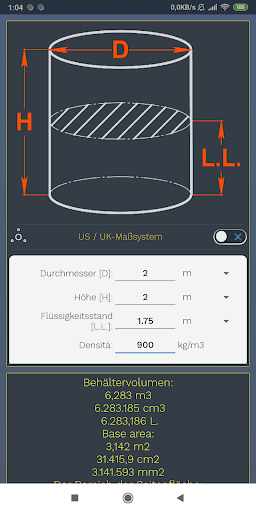 Zählen Sie mit wenigen Klicks das Volumen des Tanks, an dem Sie interessiert sind, sowie den Füllstand und das Gewicht der darin enthaltenen Flüssigkeit.