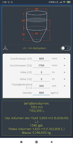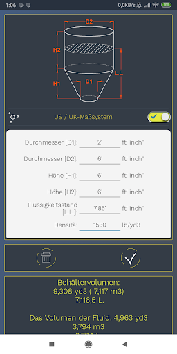 Über eine einfache und intuitive Benutzeroberfläche können Sie auf einfache Weise das Volumen von Haushalts-, Bau- oder Produktionstanks der folgenden Typen berechnen - zylindrisch, konisch, kubisch und pyramidenförmig.