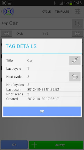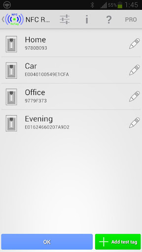 Alle Aktionen sind in einer App internen Datenbank gespeichert. Daher speichert NFC ReTag nichts auf deinen Tags. Nur die ID wird ausgelesen und mit den Aktionen in der Datenbank verknüpft.