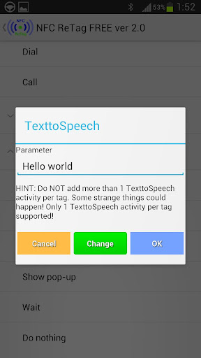 Hinweis: Für die Tasker Integration muss die App Tasker installiert sein und die Option "Allow external Access" in Tasker aktiviert werden. Desweiteren kann es Probleme geben wenn Tasker nach NFC ReTag installiert wurde. In diesem Fall bitte NFC ReTag nochmal installieren (Datenbank Backup nicht vergessen !)
