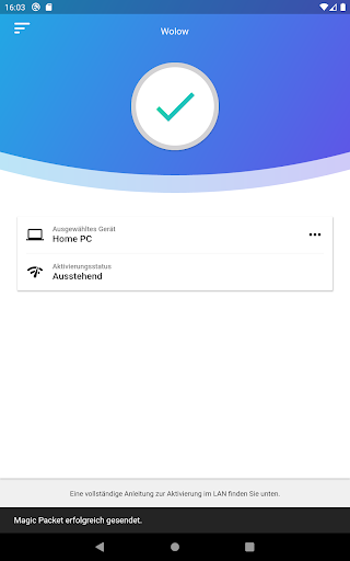 Wolow ist eine Wake-on-LAN-App, mit der Sie einen Computer aus der Ferne starten können, indem Sie eine "Magic Packet"-Anforderung senden.